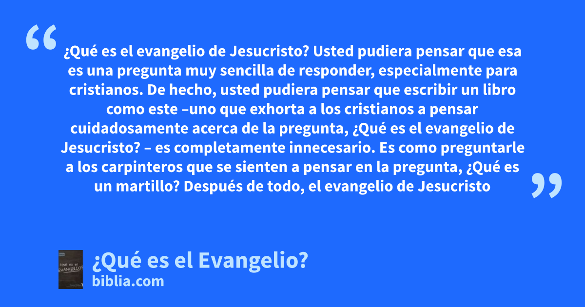 ¿Qué es el evangelio de Jesucristo? Usted pudiera pensar que esa es una pregunta muy sencilla de responder, especialmente para cristianos. De hecho, usted pudiera pensar que escribir un libro como este –uno que exhorta a los cristianos a pensar cuidadosamente acerca de la pregunta, ¿Qué es el evangelio de Jesucristo? – es completamente innecesario. Es como preguntarle a los carpinteros que se sienten a pensar en la pregunta, ¿Qué es un martillo? Después de todo, el evangelio de Jesucristo