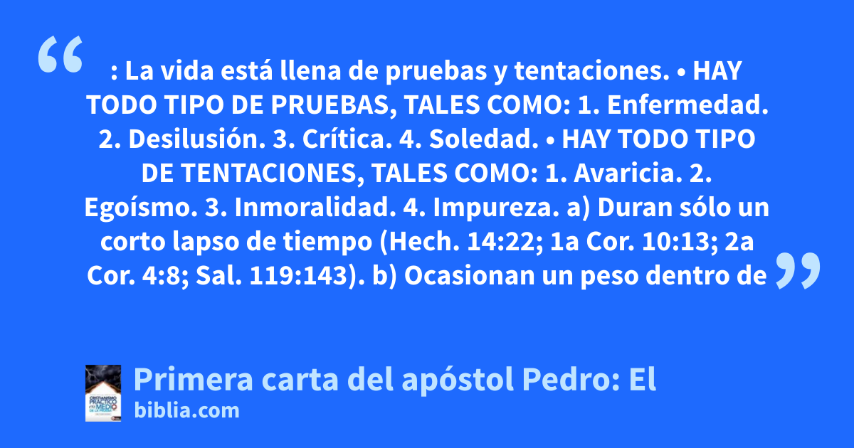 El estudio de la Primera Carta del Apóstol Pedro nos permite desarrollar el carácter cristiano. La enseñanza que el Apóstol comparte se deriva de sus vivencias personales con Cristo y en su estilo muy particular nos muestra el valor de las pruebas y tentaciones como oportunidades para reconocer nuestras limitaciones y experimentar la intervención de Dios a nuestro favor. Pedro hace énfasis en la...