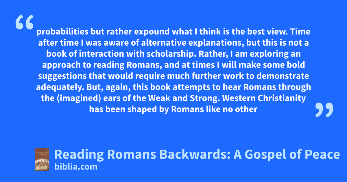 To read Romans from beginning to end, from letter opening to final doxology, is to retrace the steps of Paul. To read Romans front to back was what Paul certainly intended. But to read Romans forward may have kept the full message of Romans from being perceived. Reading forward has led readers to classify Romans as abstract and systematic theology, as a letter unstained by real pastoral concerns....