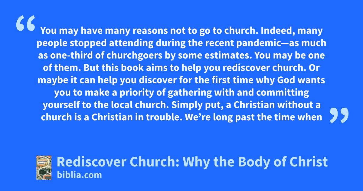 You may have many reasons not to go to church. Indeed, many people stopped attending during the recent pandemic—as much as one-third of churchgoers by some estimates. You may be one of them. But this book aims to help you rediscover church. Or maybe it can help you discover for the first time why God wants you to make a priority of gathering with and committing yourself to the local church. Simply put, a Christian without a church is a Christian in trouble. We’re long past the time when