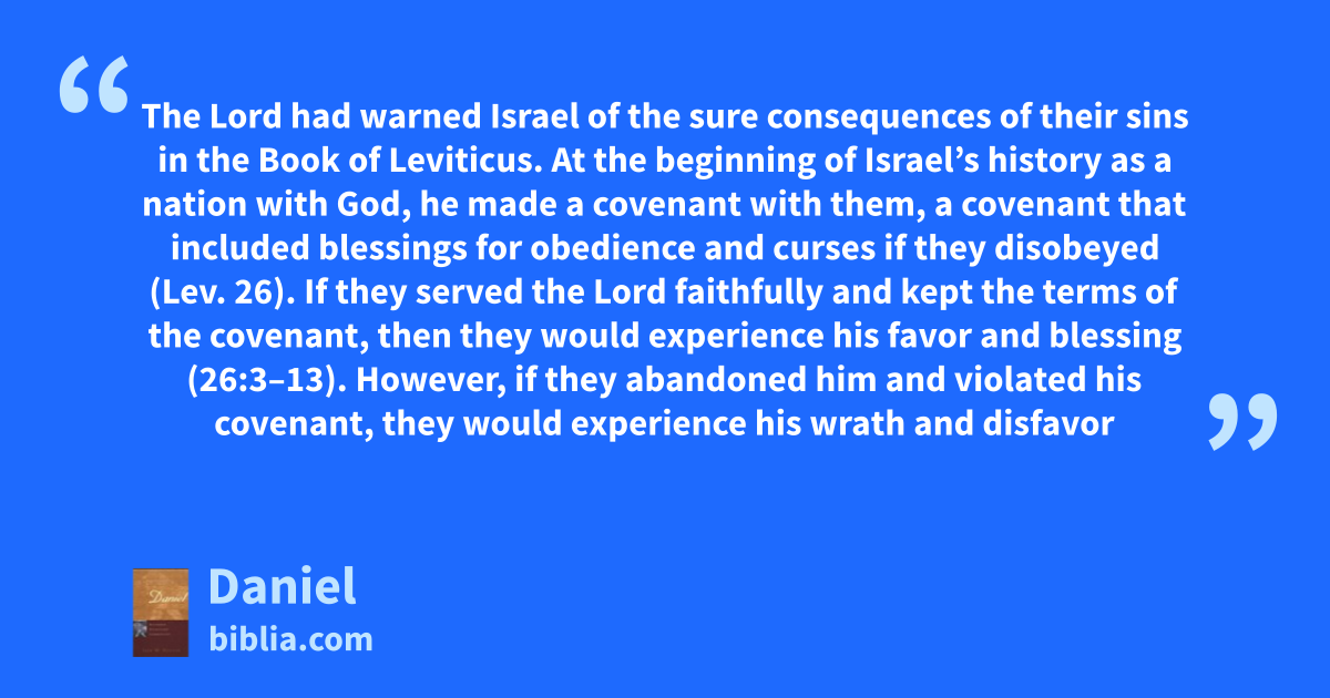 The Lord had warned Israel of the sure consequences of their sins in the Book of Leviticus. At the beginning of Israel’s history as a nation with God, he made a covenant with them, a covenant that included blessings for obedience and curses if they disobeyed (Lev. 26). If they served the Lord faithfully and kept the terms of the covenant, then they would experience his favor and blessing (26:3–13). However, if they abandoned him and violated his covenant, they would experience his wrath and disfavor
