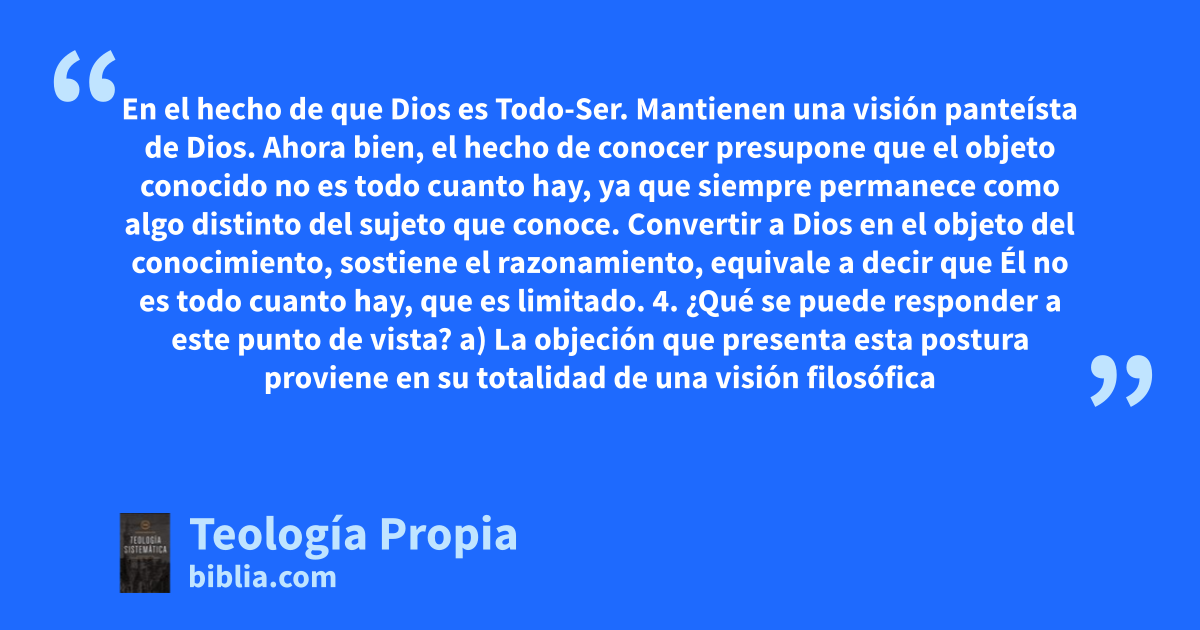 El primer volumen de la Teología sistemática de Vos cubre la doctrina de Dios, incluyendo su conocimiento, sus nombres, ser y carácter. Vos discute la trinidad, su evidencia en las Escrituras y su desarrollo teológico en los padres de la Iglesia. También son examinados los hechos de Dios y nuestro conocimiento de ellos, la creación, la predestinación, y la providencia de Dios.