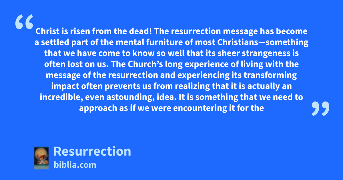 Christ is risen from the dead! The resurrection message has become a settled part of the mental furniture of most Christians—something that we have come to know so well that its sheer strangeness is often lost on us. The Church’s long experience of living with the message of the resurrection and experiencing its transforming impact often prevents us from realizing that it is actually an incredible, even astounding, idea. It is something that we need to approach as if we were encountering it for the