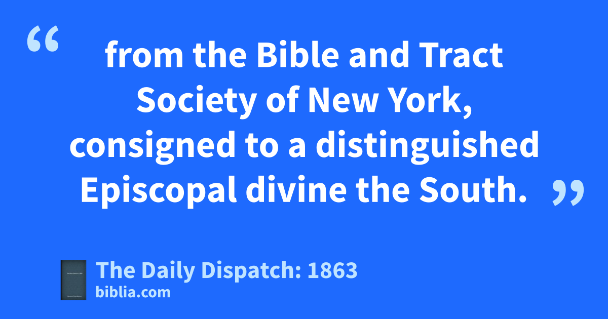 from the Bible and Tract Society of New York, consigned to a distinguished Episcopal divine the South.