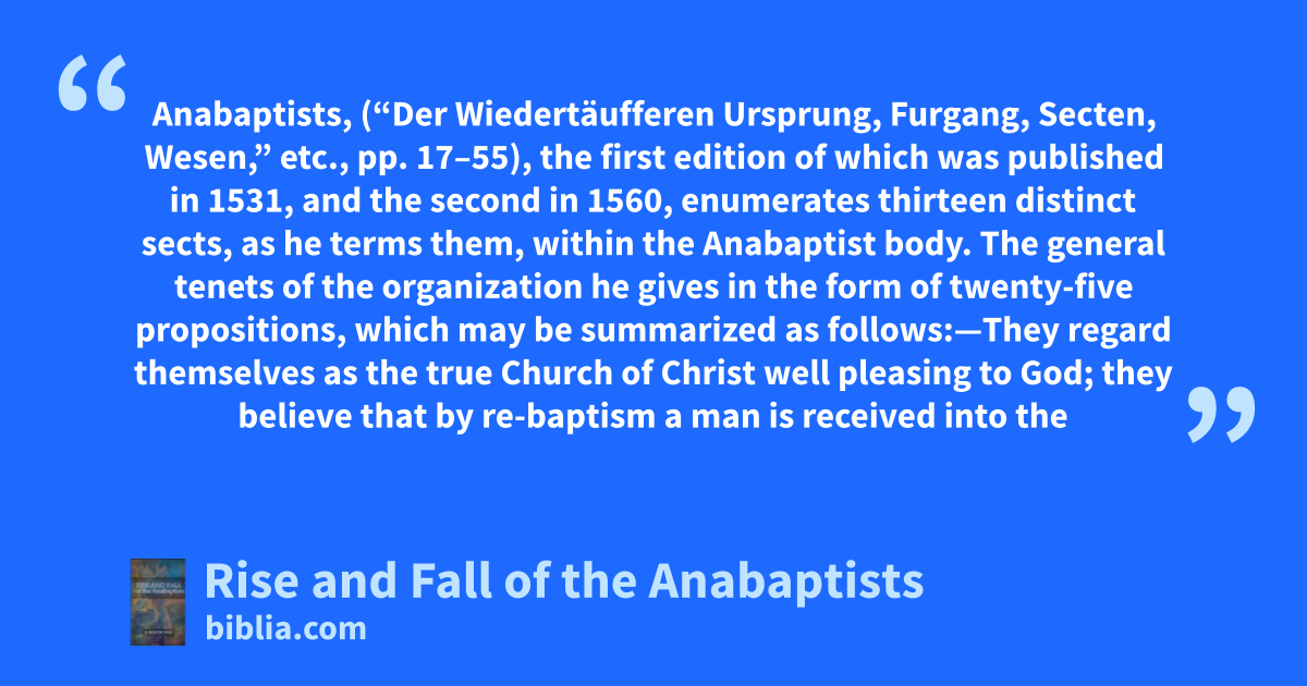 This scholarly review of German Anabaptists during the Reformation details the split in the Anabaptist community during the Münster Rebellion of 1534–1535. Interpreting this episode is where Bax contends previous historians are at fault in their blanket assessment of Anabaptism and its historical leaders.