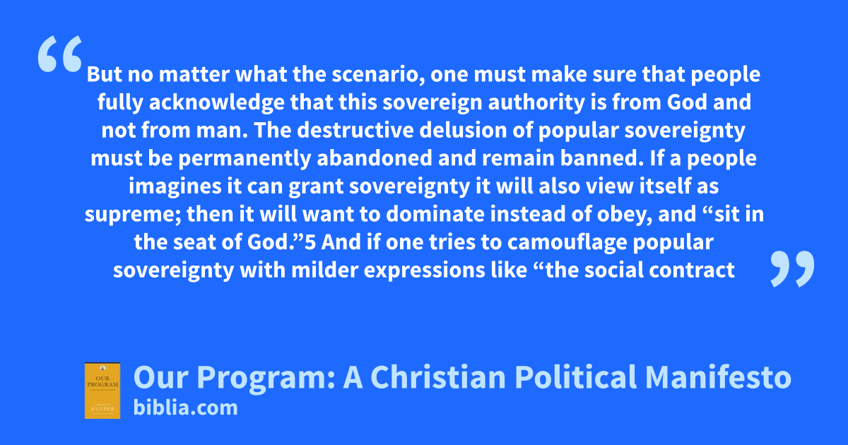But no matter what the scenario, one must make sure that people fully acknowledge that this sovereign authority is from God and not from man. The destructive delusion of popular sovereignty must be permanently abandoned and remain banned. If a people imagines it can grant sovereignty it will also view itself as supreme; then it will want to dominate instead of obey, and “sit in the seat of God.”5 And if one tries to camouflage popular sovereignty with milder expressions like “the social contract
