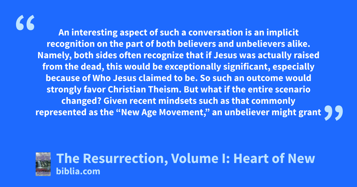 An interesting aspect of such a conversation is an implicit recognition on the part of both believers and unbelievers alike. Namely, both sides often recognize that if Jesus was actually raised from the dead, this would be exceptionally significant, especially because of Who Jesus claimed to be. So such an outcome would strongly favor Christian Theism. But what if the entire scenario changed? Given recent mindsets such as that commonly represented as the “New Age Movement,” an unbeliever might grant