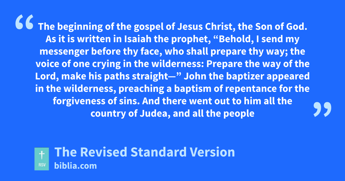 1 The beginning of the gospel of Jesus Christ, the Son of God. 2 As it is written in Isaiah the prophet,