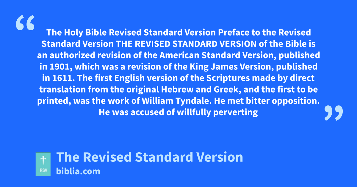 The Revised Standard Version of the Bible is an authorized revision of the American Standard Version, published in 1901, which was a revision of the King James Version, published in 1611.