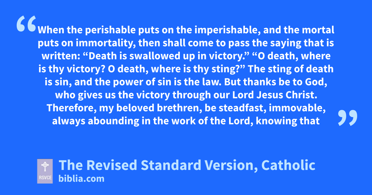 56 The sting of death is sin, and the power of sin is the law. 57 But thanks be to God, who gives us the victory through our Lord Jesus Christ.