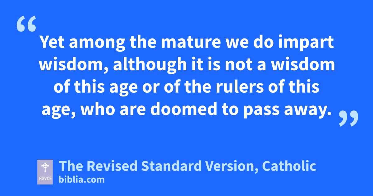 6 Yet among the mature we do impart wisdom, although it is not a wisdom of this age or of the rulers of this age, who are doomed to pass away. 7 But we impart a secret and hidden wisdom of God, which God decreed before the ages for our glorification. 8 None of the rulers of this age understood this; for if they had, they would not have crucified the Lord of glory. 9 But, as it is written,