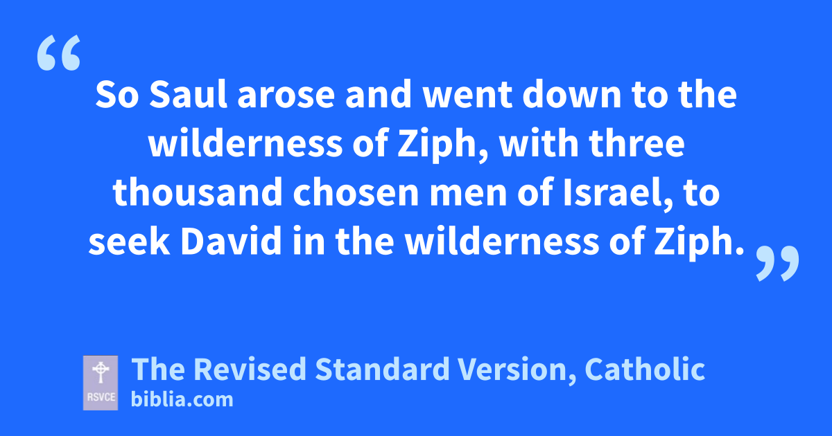 1 Then the Ziphites came to Saul at Gibe-ah, saying, “Is not David hiding himself on the hill of Hachilah, which is on the east of Jeshimon?” 2 So Saul arose and went down to the wilderness of Ziph, with three thousand chosen men of Israel, to seek David in the wilderness of Ziph. 3 And Saul encamped on the hill of Hachilah, which is beside the road on the east of Jeshimon. But David remained in the wilderness; and when he saw that Saul came after him into the wilderness, 4 David sent out spies, and learned of a certainty that Saul had come. 5 Then David rose and came to the place where Saul had encamped; and David saw the place where Saul lay, with Abner the son of Ner, the commander of his army; Saul was lying within the encampment, while the army was encamped around him.