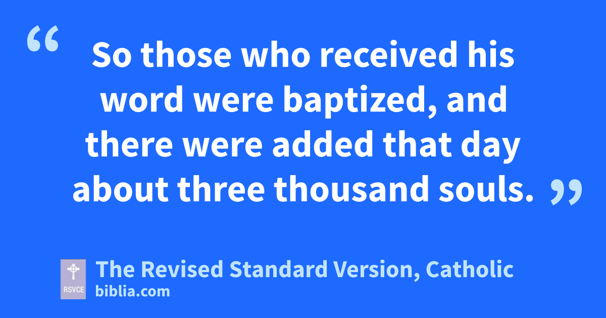 37 Now when they heard this they were cut to the heart, and said to Peter and the rest of the apostles, “Brethren, what shall we do?” 38 And Peter said to them, “Repent, and be baptized every one of you in the name of Jesus Christ for the forgiveness of your sins; and you shall receive the gift of the Holy Spirit. 39 For the promise is to you and to your children and to all that are far off, every one whom the Lord our God calls to him.” 40 And he testified with many other words and exhorted them, saying, “Save yourselves from this crooked generation.” 41 So those who received his word were baptized, and there were added that day about three thousand souls. 42 And they devoted themselves to the apostles’ teaching and fellowship, to the breaking of bread and the prayers.