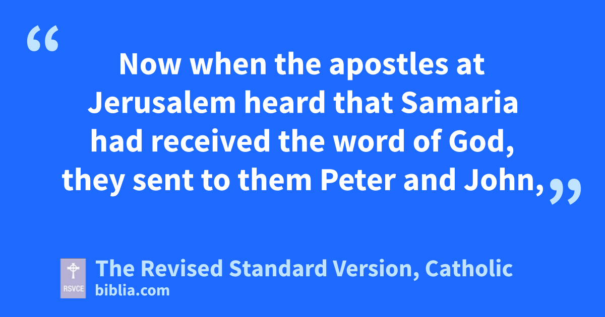 14 Now when the apostles at Jerusalem heard that Samaria had received the word of God, they sent to them Peter and John, 15 who came down and prayed for them that they might receive the Holy Spirit; 16 for it had not yet fallen on any of them, but they had only been baptized in the name of the Lord Jesus. 17 Then they laid their hands on them and they received the Holy Spirit. 18 Now when Simon saw that the Spirit was given through the laying on of the apostles’ hands, he offered them money, 19 saying, “Give me also this power, that any one on whom I lay my hands may receive the Holy Spirit.” 20 But Peter said to him, “Your silver perish with you, because you thought you could obtain the gift of God with money! 21 You have neither part nor lot in this matter, for your heart is not right before God. 22 Repent therefore of this wickedness of yours, and pray to the Lord that, if possible, the intent of your heart may be forgiven you. 23 For I see that you are in the gall of bitterness and in the bond of iniquity.” 24 And Simon answered, “Pray for me to the Lord, that nothing of what you have said may come upon me.”