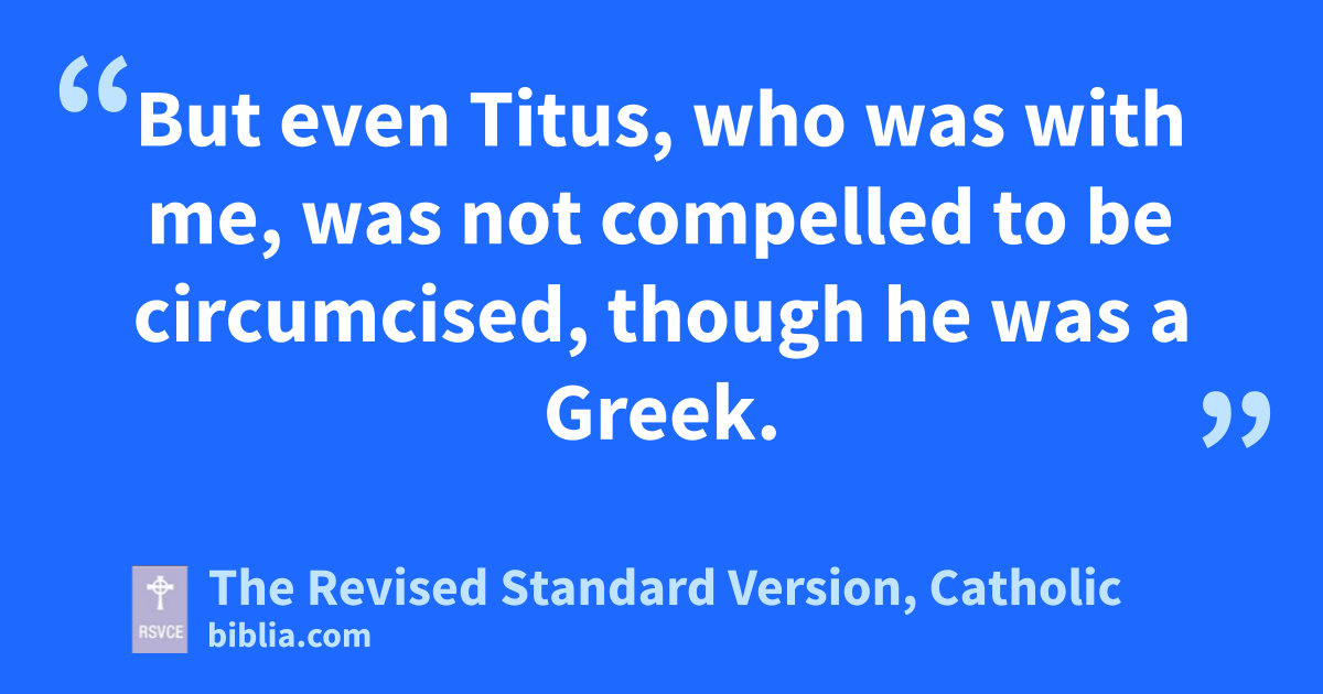 1 Then after fourteen years I went up again to Jerusalem with Barnabas, taking Titus along with me. 2 I went up by revelation; and I laid before them (but privately before those who were of repute) the gospel which I preach among the Gentiles, lest somehow I should be running or had run in vain. 3 But even Titus, who was with me, was not compelled to be circumcised, though he was a Greek. 4 But because of false brethren secretly brought in, who slipped in to spy out our freedom which we have in Christ Jesus, that they might bring us into bondage— 5 to them we did not yield submission even for a moment, that the truth of the gospel might be preserved for you. 6 And from those who were reputed to be something (what they were makes no difference to me; God shows no partiality)—those, I say, who were of repute added nothing to me; 7 but on the contrary, when they saw that I had been entrusted with the gospel to the uncircumcised, just as Peter had been entrusted with the gospel to the circumcised 8 (for he who worked through Peter for the mission to the circumcised worked through me also for the Gentiles), 9 and when they perceived the grace that was given to me, James and Cephas and John, who were reputed to be pillars, gave to me and Barnabas the right hand of fellowship, that we should go to the Gentiles and they to the circumcised; 10 only they would have us remember the poor, which very thing I was eager to do.