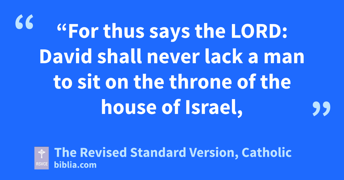 17 “For thus says the Lord: David shall never lack a man to sit on the throne of the house of Israel, 18 and the Levitical priests shall never lack a man in my presence to offer burnt offerings, to burn cereal offerings, and to make sacrifices for ever.”