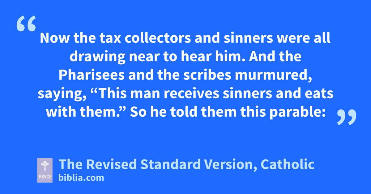 1 Now the tax collectors and sinners were all drawing near to hear him. 2 And the Pharisees and the scribes murmured, saying, “This man receives sinners and eats with them.”