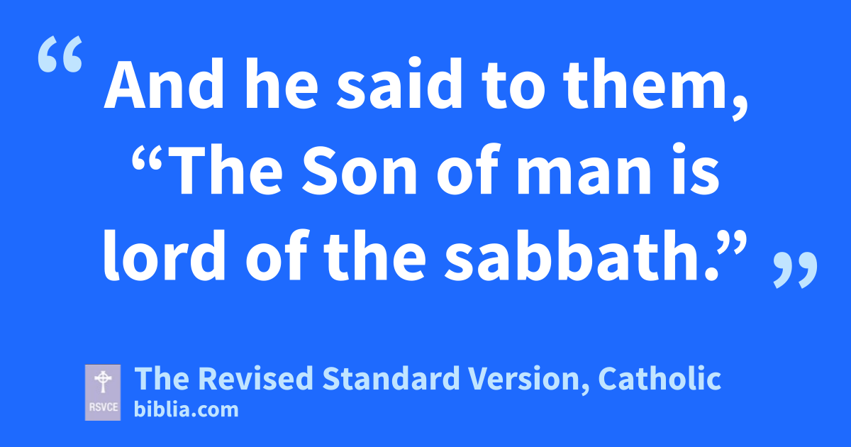 1 On a sabbath,* while he was going through the grainfields, his disciples plucked and ate some heads of grain, rubbing them in their hands. 2 But some of the Pharisees said, “Why are you doing what is not lawful to do on the sabbath?” 3 And Jesus answered, “Have you not read what David did when he was hungry, he and those who were with him: 4 how he entered the house of God, and took and ate the bread of the Presence, which it is not lawful for any but the priests to eat, and also gave it to those with him?” 5 And he said to them, “The Son of man is lord of the sabbath.”