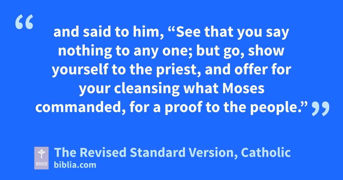 40 And a leper came to him beseeching him, and kneeling said to him, “If you will, you can make me clean.” 41 Moved with pity, he stretched out his hand and touched him, and said to him, “I will; be clean.” 42 And immediately the leprosy left him, and he was made clean. 43 And he sternly charged him, and sent him away at once, 44 and said to him, “See that you say nothing to any one; but go, show yourself to the priest, and offer for your cleansing what Moses commanded, for a proof to the people.”f 45 But he went out and began to talk freely about it, and to spread the news, so that Jesus* could no longer openly enter a town, but was out in the country; and people came to him from every quarter.