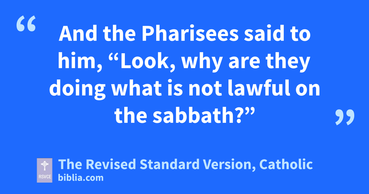 23 One sabbath he was going through the grainfields; and as they made their way his disciples began to pluck heads of grain. 24 And the Pharisees said to him, “Look, why are they doing what is not lawful on the sabbath?” 25 And he said to them, “Have you never read what David did, when he was in need and was hungry, he and those who were with him: 26 how he entered the house of God, when Abiathar was high priest, and ate the bread of the Presence, which it is not lawful for any but the priests to eat, and also gave it to those who were with him?” 27 And he said to them, “The sabbath was made for man, not man for the sabbath; 28 so the Son of man is lord even of the sabbath.”