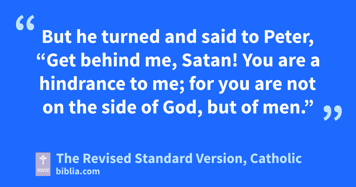 21 From that time Jesus began to show his disciples that he must go to Jerusalem and suffer many things from the elders and chief priests and scribes, and be killed, and on the third day be raised. 22 And Peter took him and began to rebuke him, saying, “God forbid, Lord! This shall never happen to you.” 23 But he turned and said to Peter, “Get behind me, Satan! You are a hindrancev to me; for you are not on the side of God, but of men.”