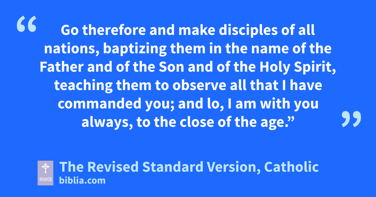 16 Now the eleven disciples went to Galilee, to the mountain to which Jesus had directed them. 17 And when they saw him they worshiped him; but some doubted. 18 And Jesus came and said to them, “All authority in heaven and on earth has been given to me. 19 Go therefore and make disciples of all nations, baptizing them in the name of the Father and of the Son and of the Holy Spirit, 20 teaching them to observe all that I have commanded you; and lo, I am with you always, to the close of the age.”