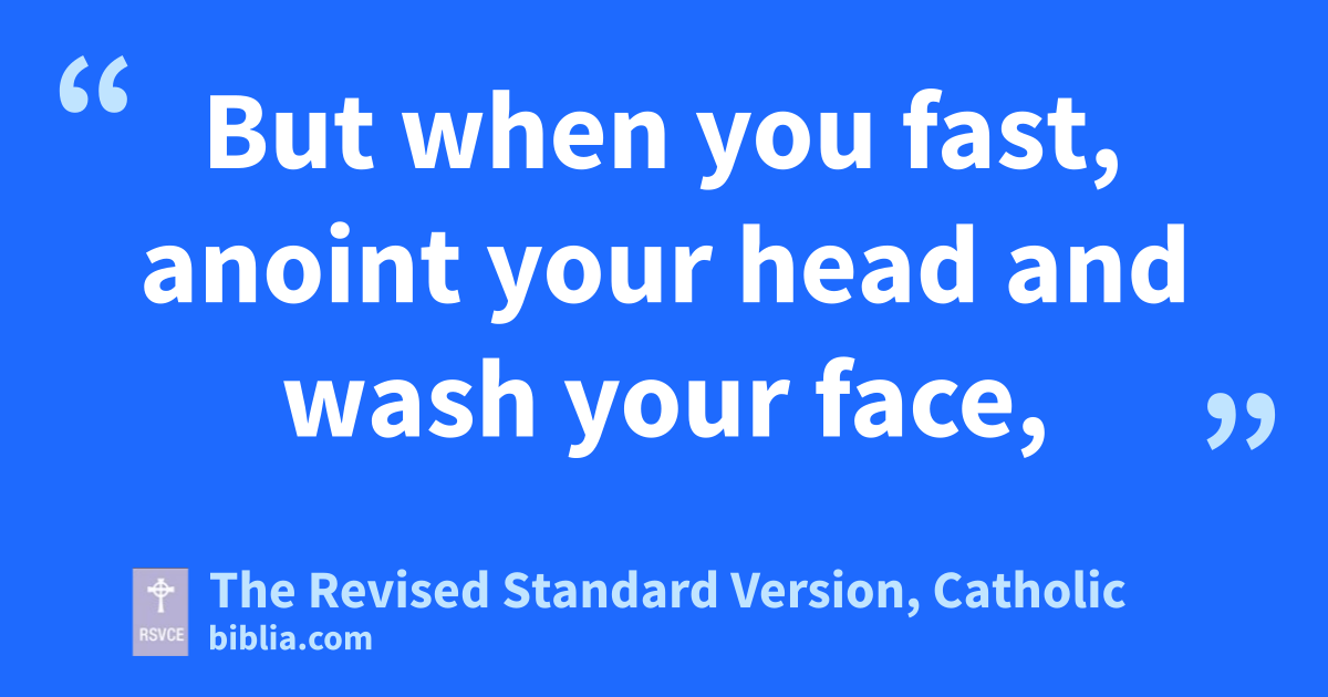 16 “And when you fast, do not look dismal, like the hypocrites, for they disfigure their faces that their fasting may be seen by men. Truly, I say to you, they have received their reward. 17 But when you fast, anoint your head and wash your face, 18 that your fasting may not be seen by men but by your Father who is in secret; and your Father who sees in secret will reward you.