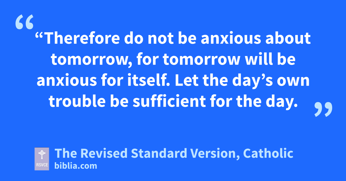 34 “Therefore do not be anxious about tomorrow, for tomorrow will be anxious for itself. Let the day’s own trouble be sufficient for the day.