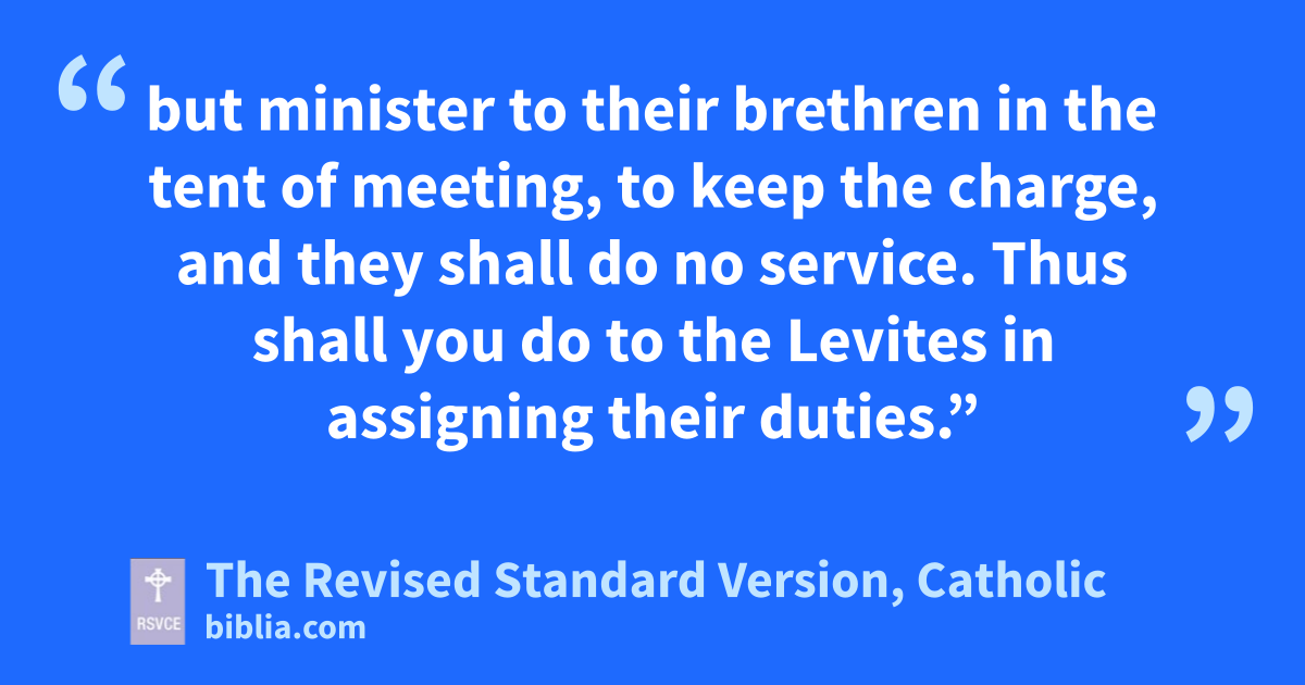 23 And the Lord said to Moses, 24 “This is what pertains to the Levites: from twenty-five years old and upward they shall go in to perform the work in the service of the tent of meeting; 25 and from the age of fifty years they shall withdraw from the work of the service and serve no more, 26 but minister to their brethren in the tent of meeting, to keep the charge, and they shall do no service. Thus shall you do to the Levites in assigning their duties.”