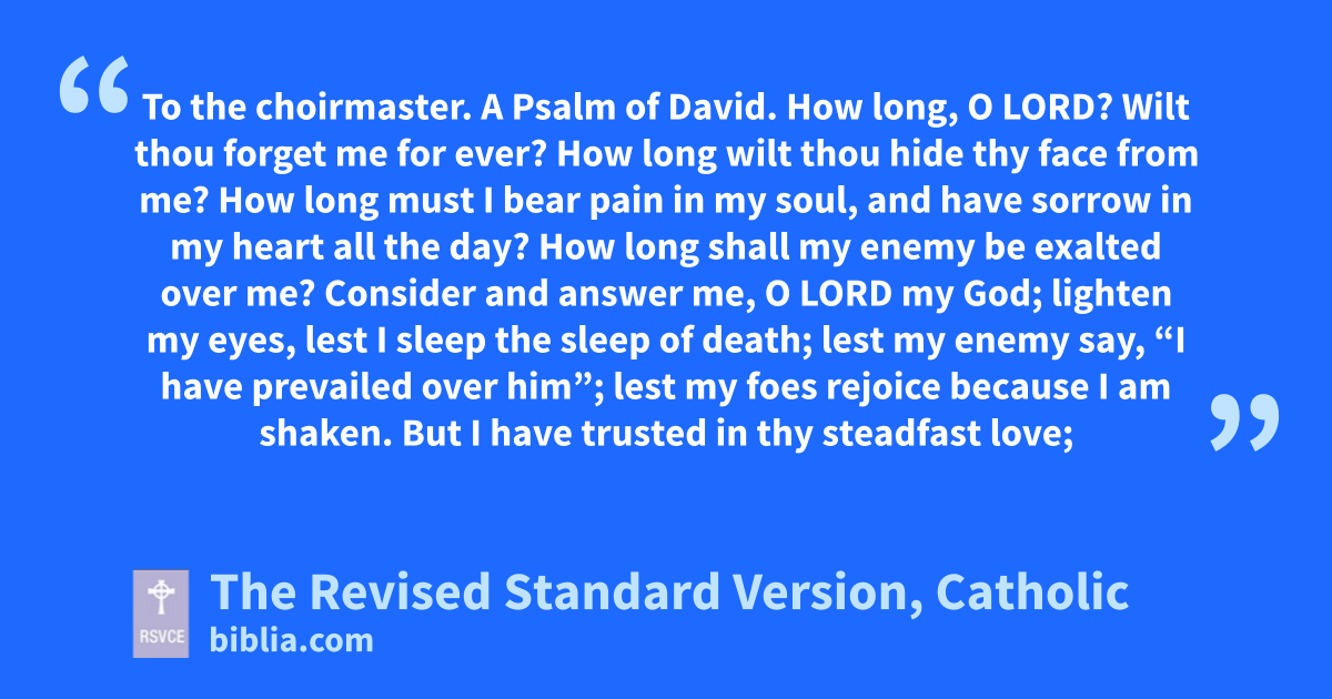 The Catholic Edition of the New Testament, copyright Copyright 1965; The Catholic Edition of the Old Testament, incorporating the Apocrypha, copyright Copyright 1966 Division of Christian Education of the National Council of Churches of Christ in the United States of America. |