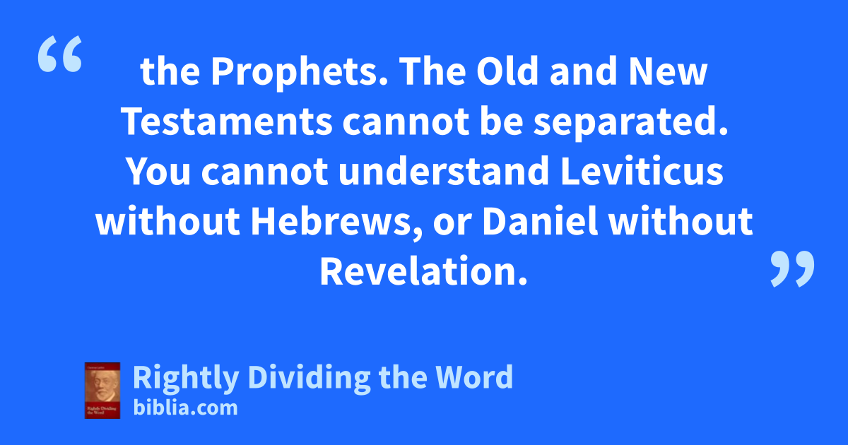 the Prophets. The Old and New Testaments cannot be separated. You cannot understand Leviticus without Hebrews, or Daniel without Revelation.