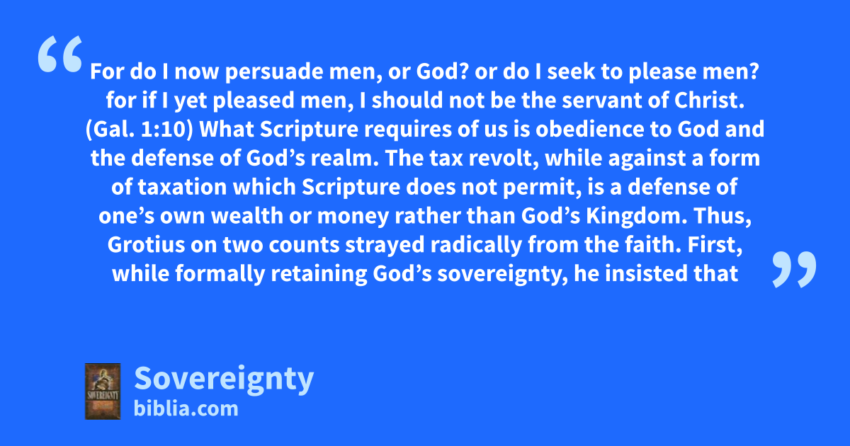 The word “sovereignty” means “one who is above all.” It is the supreme and highest power. The Christian defines the Sovereign Lord as unlimited, independent, with original authority. For fallen man, sovereignty belongs to the state because the state is the source of law. Since the Christian can have no other gods, history is defined appropriately by Augustine as a conflict between the City of...