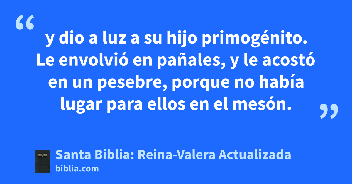 y dio a luz a su hijo primogénito. Le envolvió en pañales, y le acostó en un pesebre, porque no había lugar para ellos en el mesón.