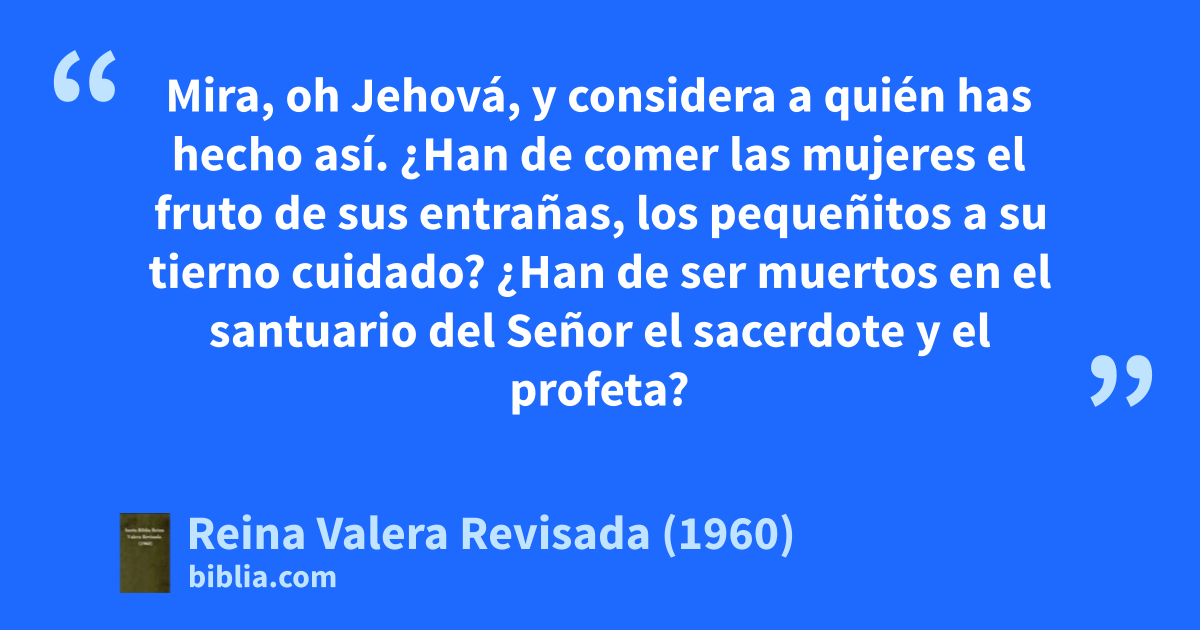 ¿Han de comer las mujeres el fruto de sus entrañas, los pequeñitos a su tierno cuidado?