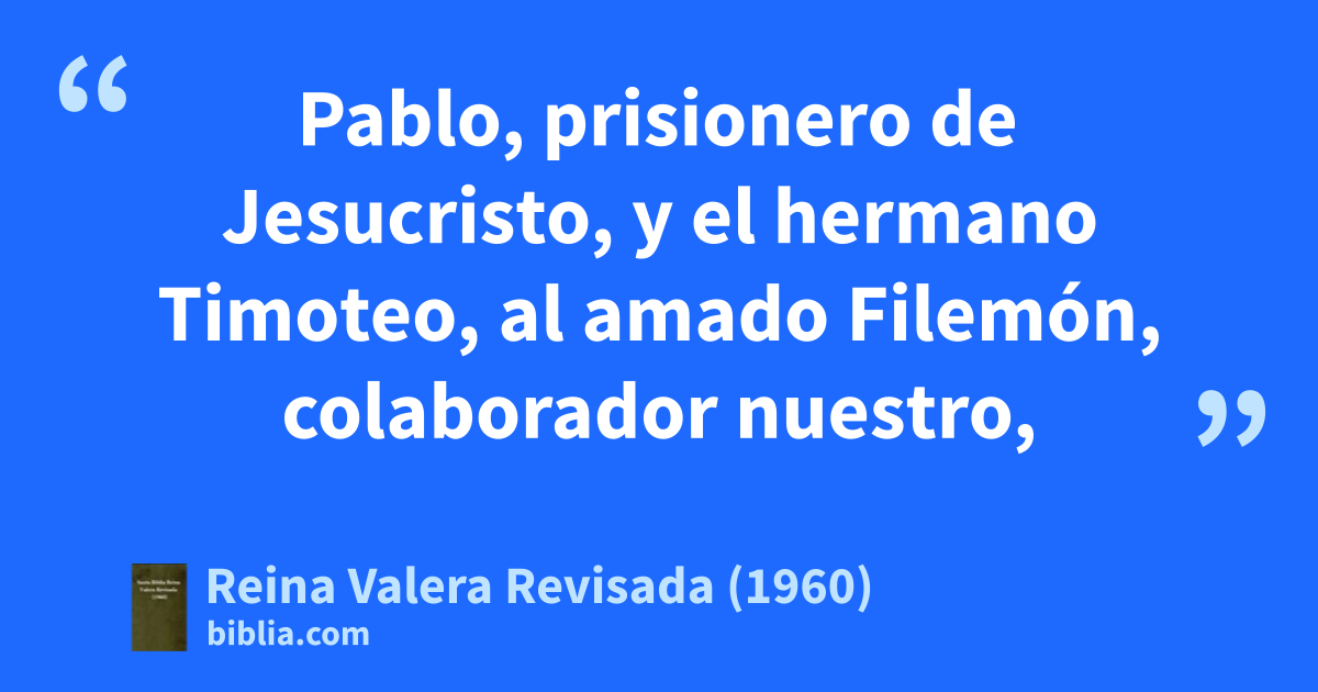 1Pablo, prisionero de Jesucristo, y el hermano Timoteo, al amado Filemón, colaborador nuestro, 2y a la amada hermana Apia, y a Arquipoa nuestro compañero de milicia, y a la iglesia que está en tu casa: 3Gracia y paz a vosotros, de Dios nuestro Padre y del Señor Jesucristo.