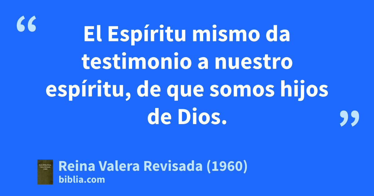 12Así que, hermanos, deudores somos, no a la carne, para que vivamos conforme a la carne; 13porque si vivís conforme a la carne, moriréis; mas si por el Espíritu hacéis morir las obras de la carne, viviréis. 14Porque todos los que son guiados por el Espíritu de Dios, éstos son hijos de Dios. 15Pues no habéis recibido el espíritu de esclavitud para estar otra vez en temor, sino que habéis recibido el espíritu de adopción, por el cual clamamos: ¡Abba, Padre! 16El Espíritu mismo da testimonio a nuestro espíritu, de que somos hijos de Dios. 17Y si hijos, también herederos;a herederos de Dios y coherederos con Cristo, si es que padecemos juntamente con él, para que juntamente con él seamos glorificados.
