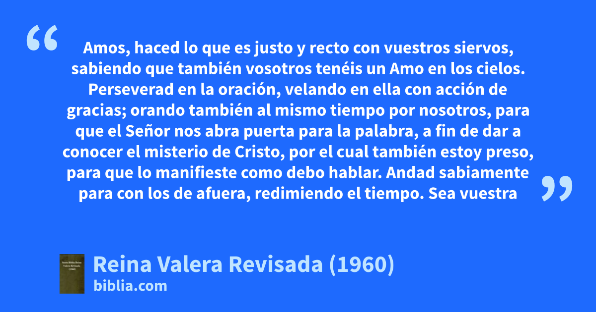 1Amos, haced lo que es justo y recto con vuestros siervos, sabiendo que también vosotros tenéis un Amo en los cielos.a