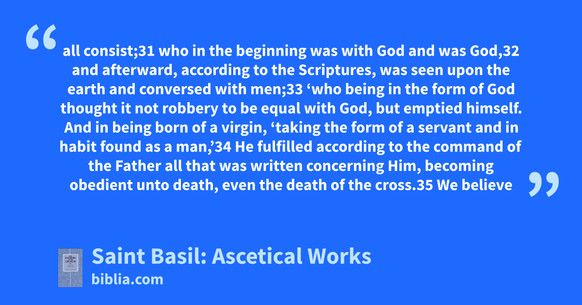 all consist;31 who in the beginning was with God and was God,32 and afterward, according to the Scriptures, was seen upon the earth and conversed with men;33 ‘who being in the form of God thought it not robbery to be equal with God, but emptied himself. And in being born of a virgin, ‘taking the form of a servant and in habit found as a man,’34 He fulfilled according to the command of the Father all that was written concerning Him, becoming obedient unto death, even the death of the cross.35 We believe