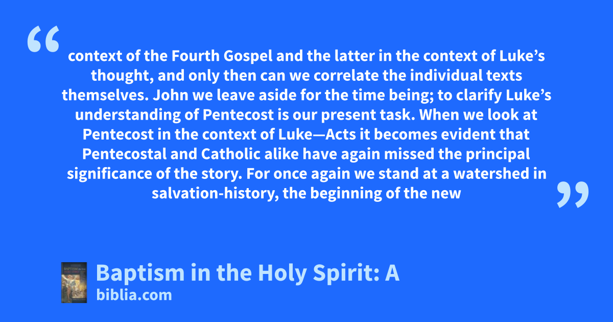In Baptism in the Holy Spirit James D. G. Dunn argues that water baptism is only one element in the New Testament pattern of conversion and initiation. The gift of the Spirit, he believes, is the central element. For the writers of the New Testament, only those who had received the Holy Spirit could be called Christians. For them, the reception of the Spirit was a very definite and often very...
