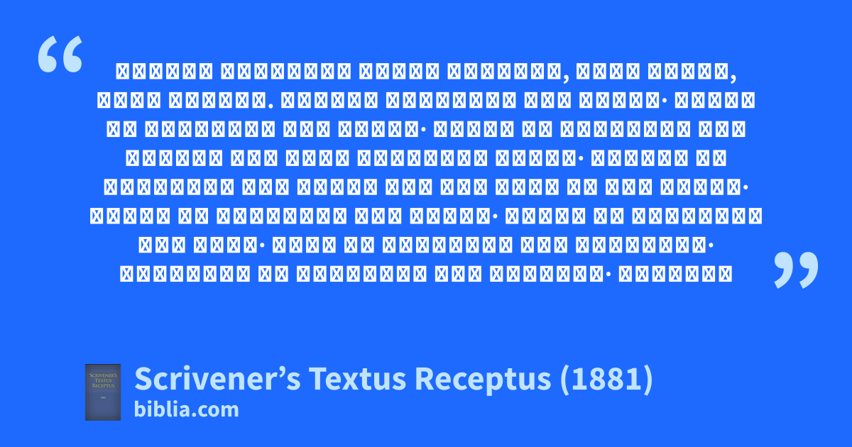 The Textus Receptus 1881 Greek text is the corresponding Greek text to the 1611 King James Version. The Scrivener text is a modified Beza 1598 Textus Receptus in which changes have been made to reflect the readings chosen by the KJV translators. Scrivener’s intent was to artificially create a Greek text that closely matched the translator-modified Textus Receptus text and the resulting English...