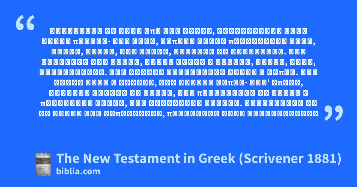 About The New Testament in Greek (Scrivener 1881)This Greek text (Scrivener 1881) is the Greek text which corresponds best to the 1611 King James Version. The Scrivener text is a modified Beza 1598 Textus Receptus in which changes have been made to reflect the readings chosen by the KJV translators. Scrivener's intent was to artificially create a Greek text that closely matched the translator-modified Textus Receptus text and the resulting English version. This is a useful text for comparison for those with proficiency in Greek. Further, this edition of the text is fully morphologically tagged with the Logos Bible Software morphology; it also includes lemma (dictionary) forms and Strongs numbers for every word in the Greek text. |