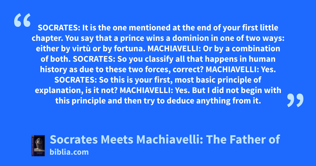 In this volume political theory’s foundational thinker has a conversation with the father of philosophy. Peter Kreeft’s reincarnation of the gadfly examines Machiavelli’s virtù, fortuna, and other concepts. The practical power player engages the classical seeker of the ideal in an approachable book on logic, ethics, and politics.