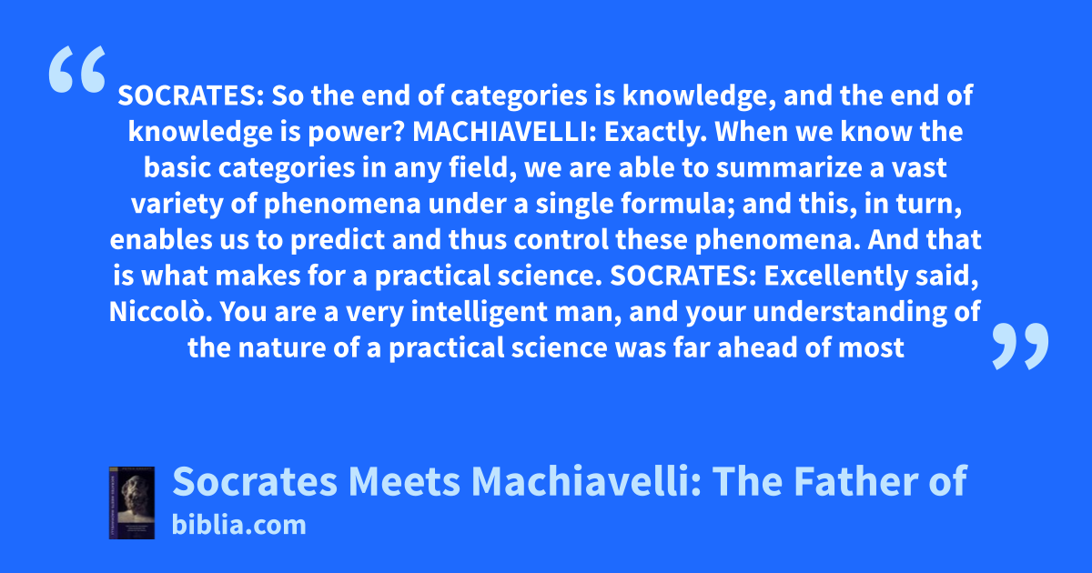 In this volume political theory’s foundational thinker has a conversation with the father of philosophy. Peter Kreeft’s reincarnation of the gadfly examines Machiavelli’s virtù, fortuna, and other concepts. The practical power player engages the classical seeker of the ideal in an approachable book on logic, ethics, and politics.