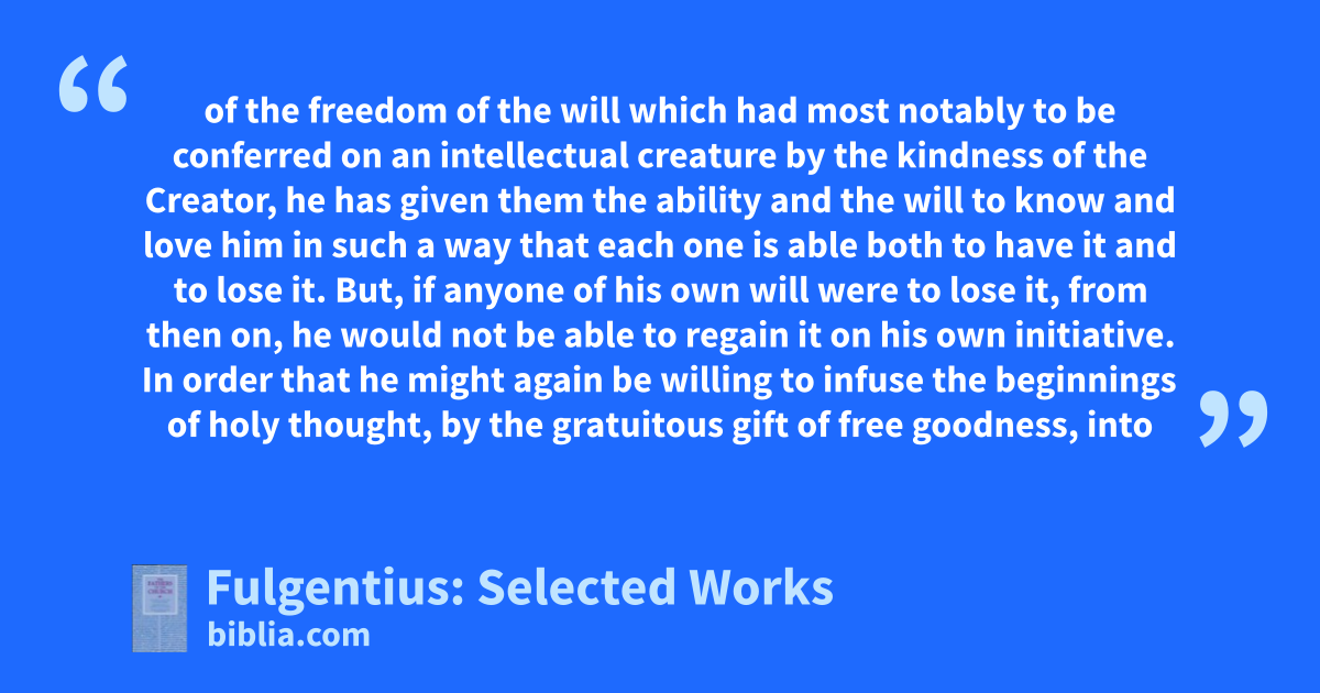 Fulgentius, bishop of Ruspe (ca. 467–532), is considered the greatest North African theologian after the time of St. Augustine. When Fulgentius was born, North Africa had been under the rule of Germanic Vandals for several decades. His family was repeatedly victimized by Vandal persecutions, and Fulgentius himself suffered persecution and exile. While in exile, he continued his pastoral labors...