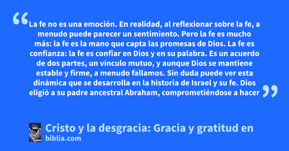 La fe no es una emoción. En realidad, al reflexionar sobre la fe, a menudo puede parecer un sentimiento. Pero la fe es mucho más: la fe es la mano que capta las promesas de Dios. La fe es confianza: la fe es confiar en Dios y en su palabra. Es un acuerdo de dos partes, un vínculo mutuo, y aunque Dios se mantiene estable y firme, a menudo fallamos. Sin duda puede ver esta dinámica que se desarrolla en la historia de Israel y su fe. Dios eligió a su padre ancestral Abraham, comprometiéndose a hacer