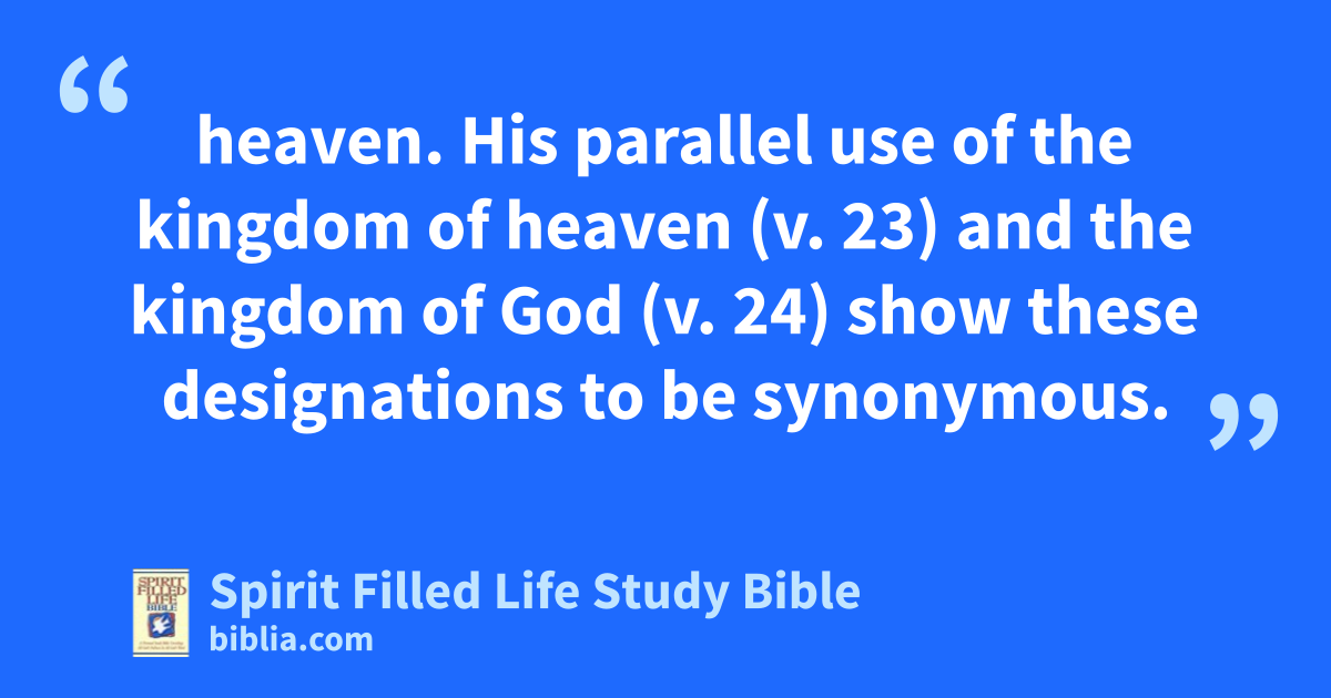 heaven. His parallel use of the kingdom of heaven (v. 23) and the kingdom of God (v. 24) show these designations to be synonymous.