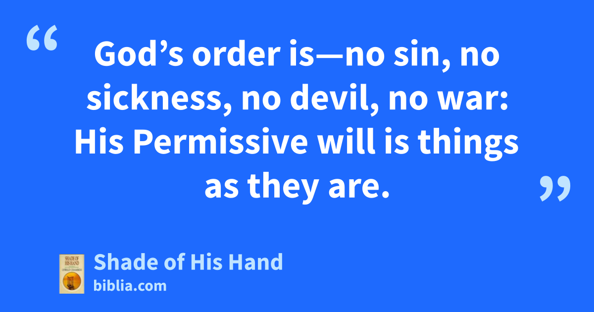 God’s order is—no sin, no sickness, no devil, no war: His Permissive will is things as they are.