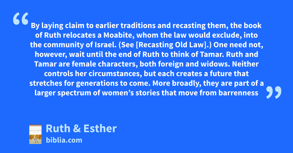 Ruth and Esther are the only two women for whom books of the Hebrew Bible are named. This distinction in itself sets the books apart from other biblical texts that bear male names, address the community through its male members, recall the workings of God and human history through a predominately male perspective, and look to the future through male heirs. These books are particular stories of...