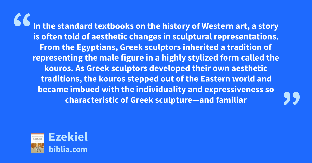 In the standard textbooks on the history of Western art, a story is often told of aesthetic changes in sculptural representations. From the Egyptians, Greek sculptors inherited a tradition of representing the male figure in a highly stylized form called the kouros. As Greek sculptors developed their own aesthetic traditions, the kouros stepped out of the Eastern world and became imbued with the individuality and expressiveness so characteristic of Greek sculpture—and familiar