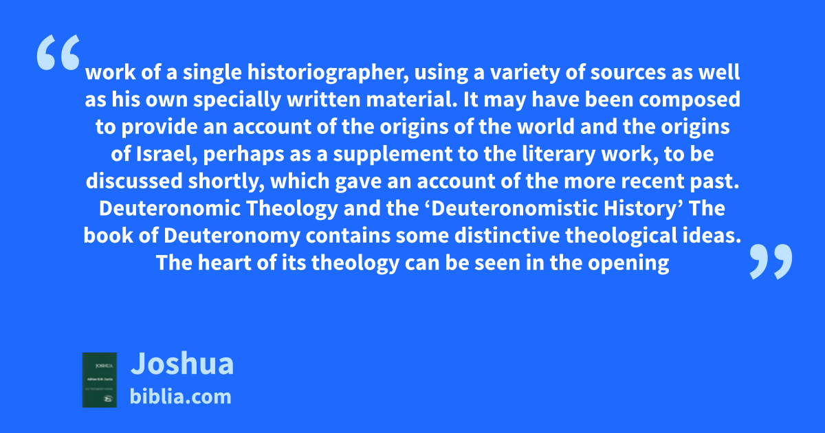 The book of Joshua bridges the gap between the Pentateuch and the story of Israel in the Promised Land. It recounts the familiar traditions of the conquest of Canaan, and details the portions of territory allotted to the tribes. Does the book of Joshua relate to neighboring books in the canon? To what extent does it contain theology—such as the preceding books—and to what extent does Joshua...